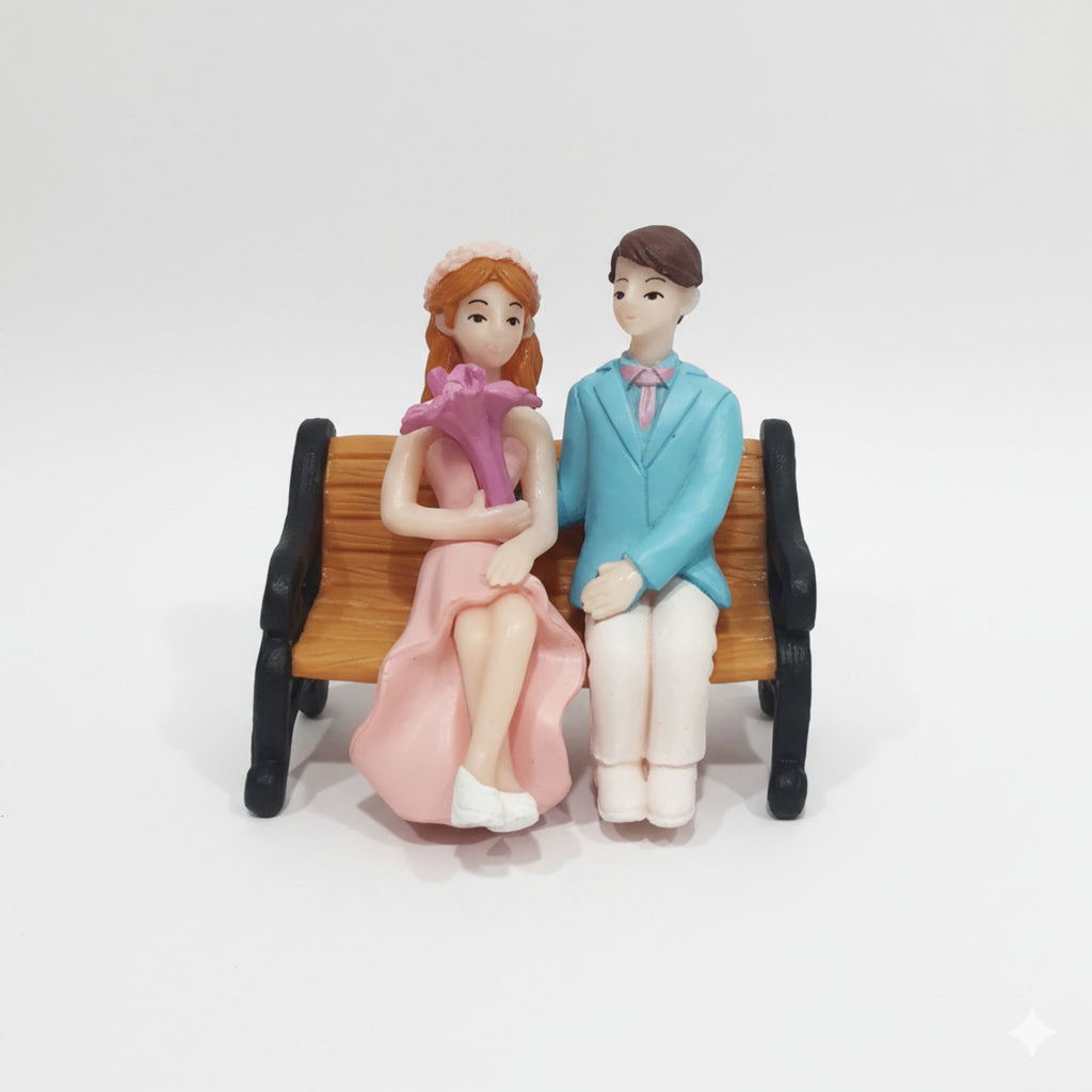 Romantic Couple Sitting on Bench Miniature Figurines (Set of 2) | Resin Love Couple Showpiece for Cake Topper, Home Decor, Valentine Gift, Anniversary Decoration